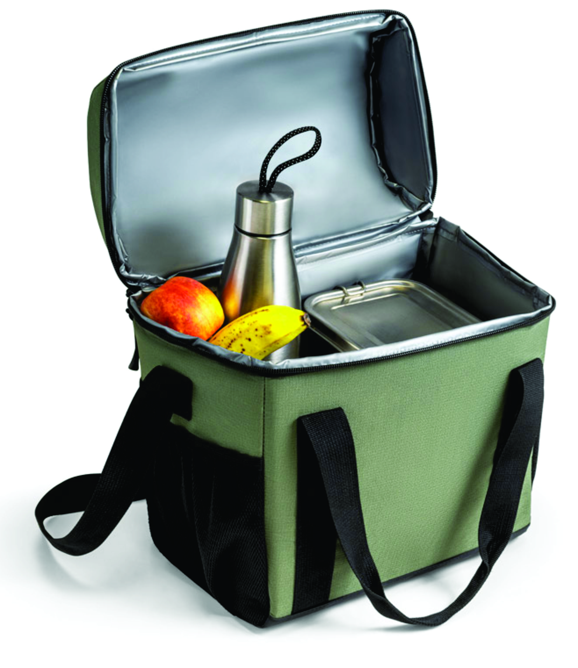 Bolsa térmica almofadada 600D ripstop em poliéster reciclado (100% rPET). Composto por 1 compartimento principal espaçoso com fecho duplo e 2 bolsos laterais em tela mesh para pequenos objetos. O interior forrado em PEVA garante um bom isolamento térmico permitindo a conservação do frio por mais tempo e a sua higienização. A robustez dos materiais que o compõe conferem-lhe uma grande resistência e durabilidade, pensado para as necessidades do dia a dia. Certificação EU Food Grade. Consulte capacidades disponíveis.