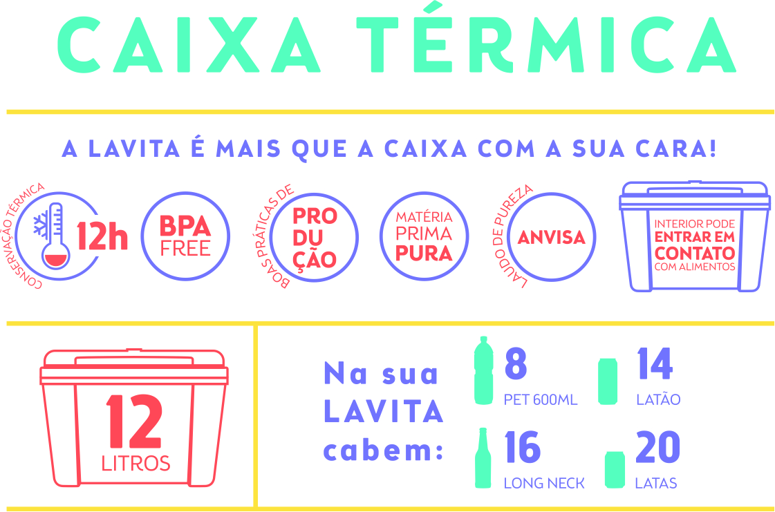 8 - Na sua Lavita 12L cabem: 8 Pet 600ml, 14 latão, 16 Long Neck, 20 latas;