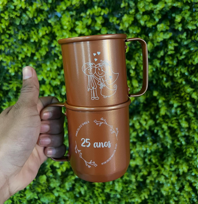 Caneca de alumínio personalizada, ideal para brindes promocionais, eventos, kits corporativos e ações de marca. Leve, resistente e com excelente acabamento para valorizar sua identidade visual. Disponível em três tamanhos: 350ml, 550ml e 750ml.