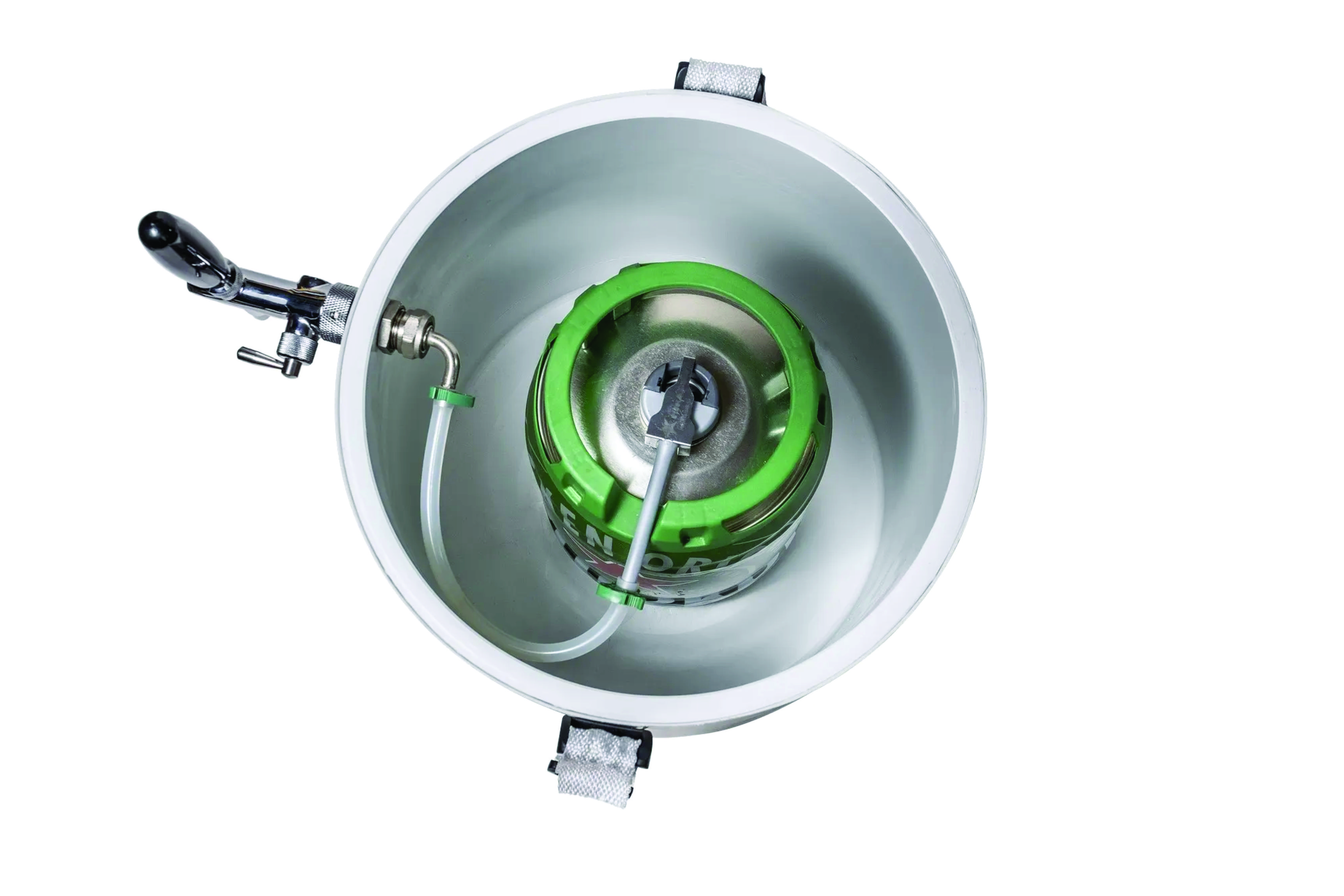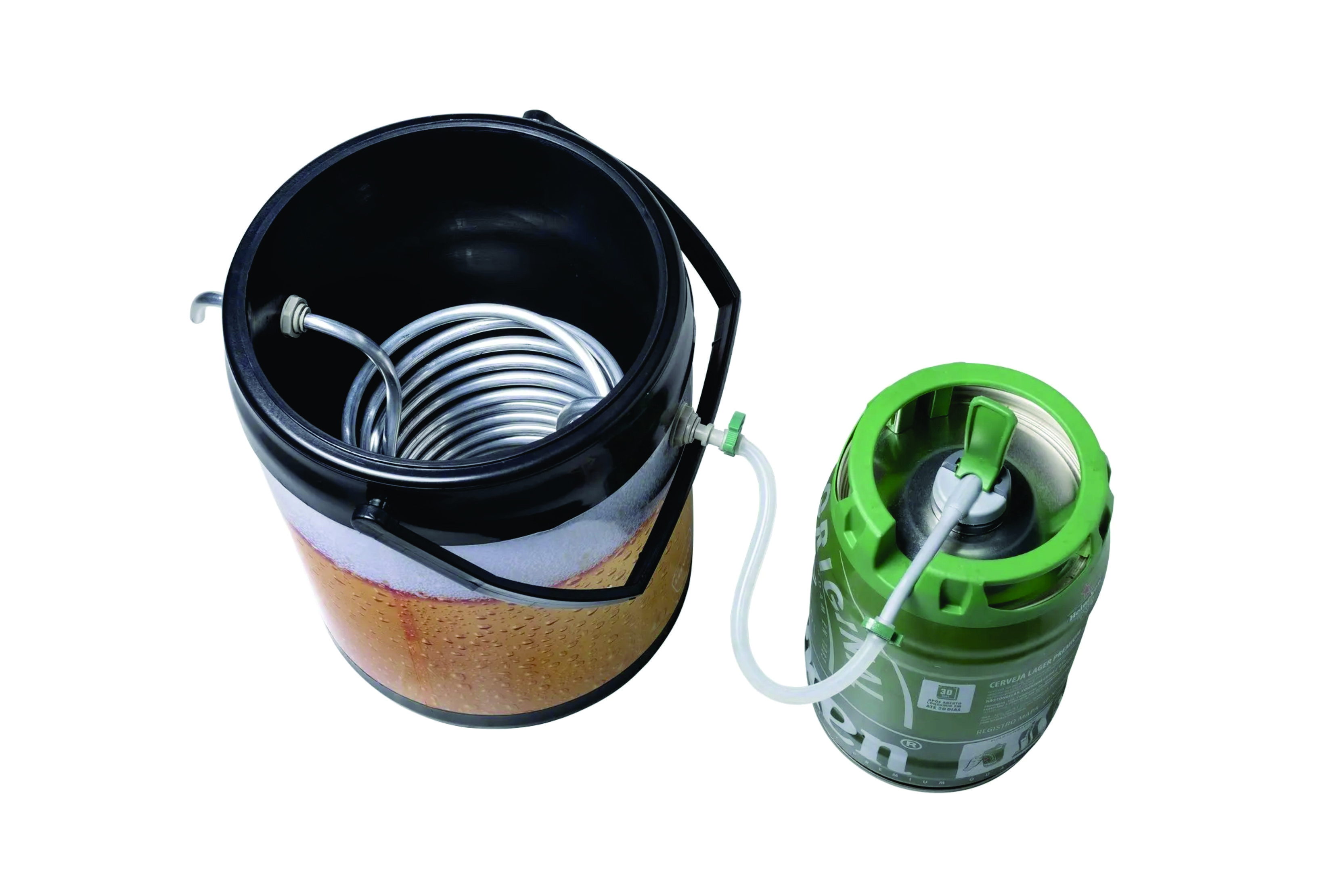 A melhor opção para usufruir ao máximo seu barril heineken. Mobildade, limpeza e faciliadde para servir sua família, amigos e convidados. Ideal para uso em ambientes abertos como priscina camping e praia. Fácil de transportar com sua alça tira colo ajustável É só colocar gelo e sua alegria está garantida até roncar o barril. Usando a chopeira a gelo, você evita os inconvenientes de ter que deixar o barril em um freezes, que será toda a hora aberto para servi um copo. Além disso a torneira tipo italiana permite o controle da espuma que vai querer. É prático e limpo. Atenção: Torneira não inclusa Não acompanha o barril 5l (imagens ilustrativas) Manual de uso incluso